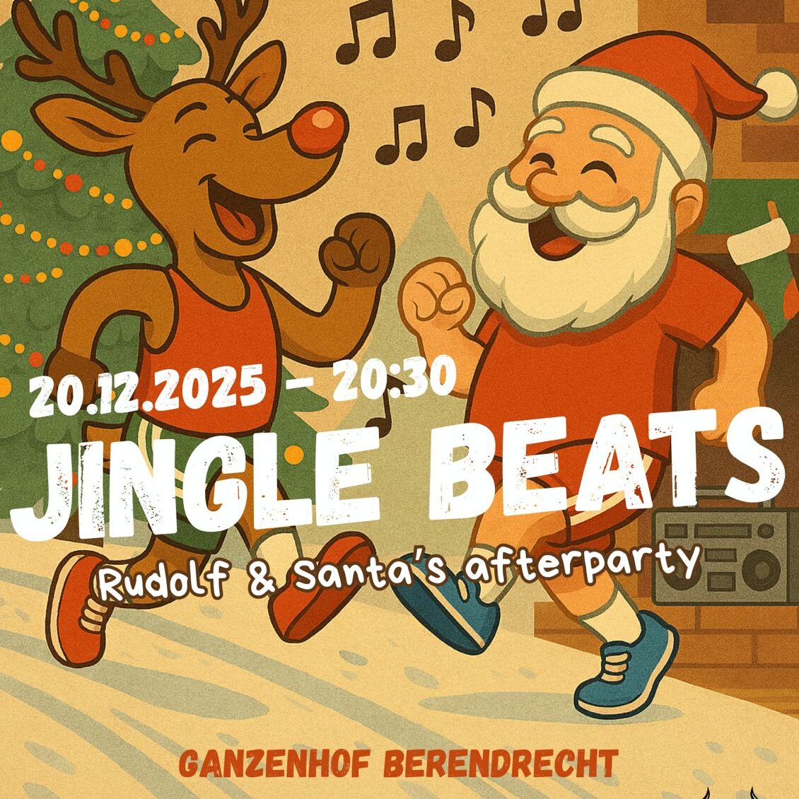 Jingle Beats is een afsluitende fuif in het Ganzenhof van Berendrecht. Kaarten in voorverkoop kosten 6€, lopers krijgen een korting van 2€ bij een gecombineerde aankoop. Tijdens Jingle Beats maakt elke loper, na afgifte van zijn rugnummer, opnieuw kans op een waardebon.